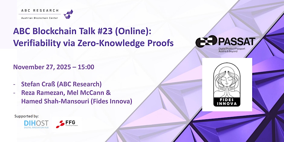Die Austrian Blockchain Center lädt herzlich zum nächsten ABC Blockchain Talk #23 ein. Im Fokus steht das Thema Zero-Knowledge Proofs (ZKPs) – eine innovative Technologie, die Verifizierbarkeit ermöglicht, ohne sensible Daten preiszugeben. Erfahren Sie, wie ZKPs helfen, die Balance zwischen Transparenz und Datenschutz in Blockchain-Anwendungen zu wahren. Die Veranstaltung bietet spannende Einblicke in aktuelle Forschungsprojekte […]